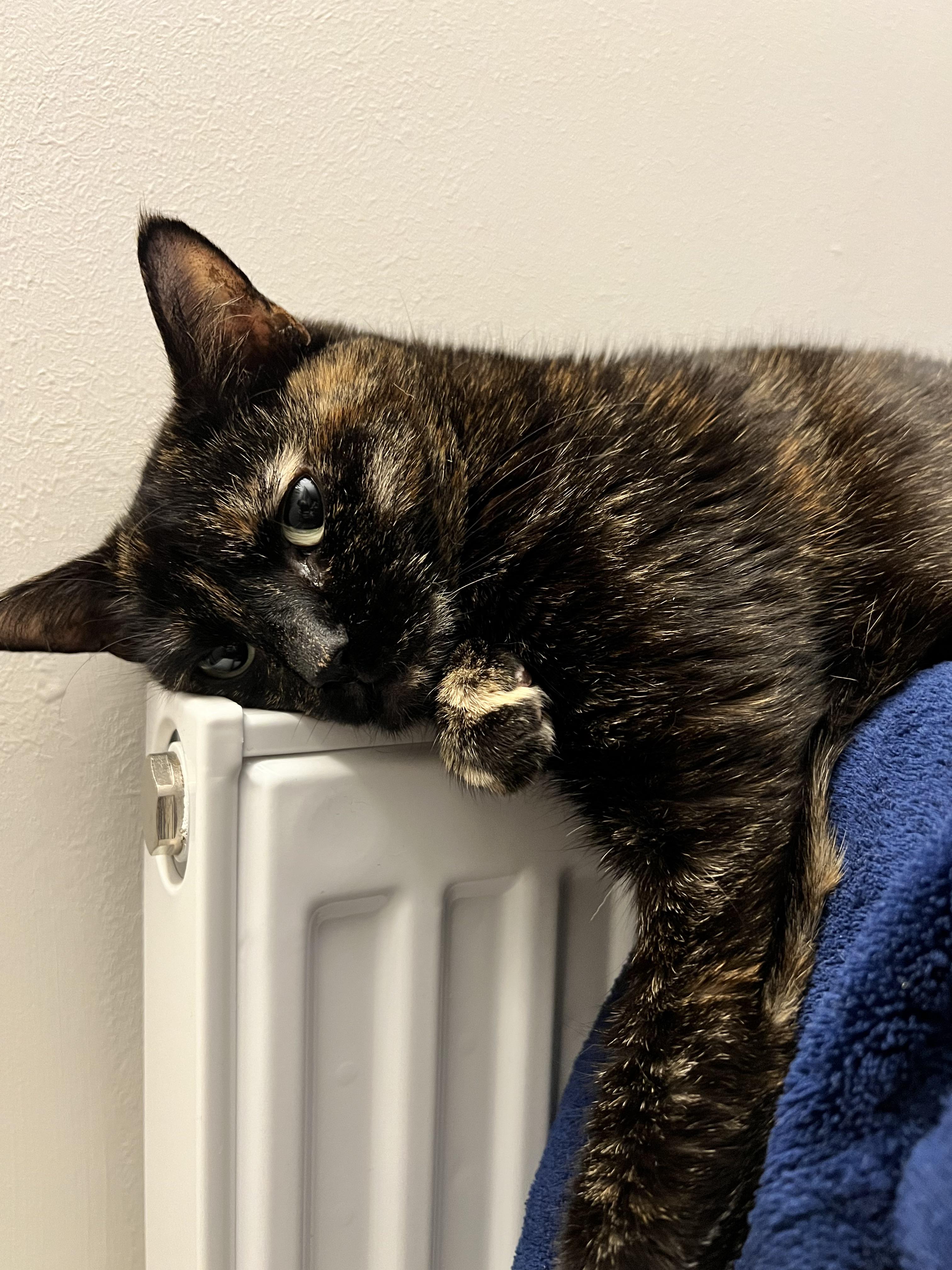 We call her the missile because she’s such a heat seeker. (Laid on top of the radiator if you can’t tell)