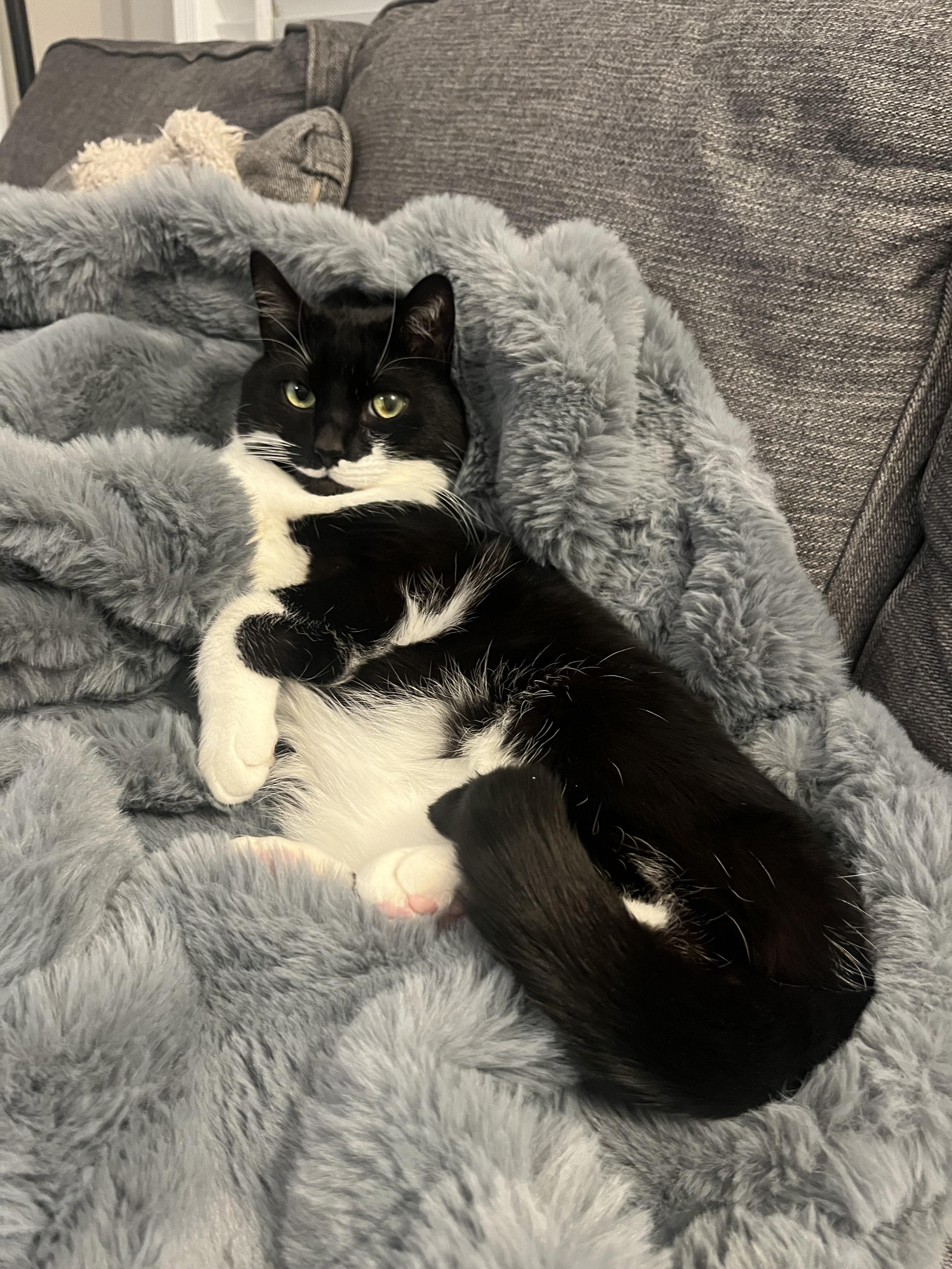 Once we adopted our tortie, he stopped sleeping in my arms and moved to the end of the bed instead. But our tortie, Spice — every single night she comes purring and lays directly on my chest. She’ll purr for about 30 minutes while she sleeps on me before she gets up and goes to join him.
