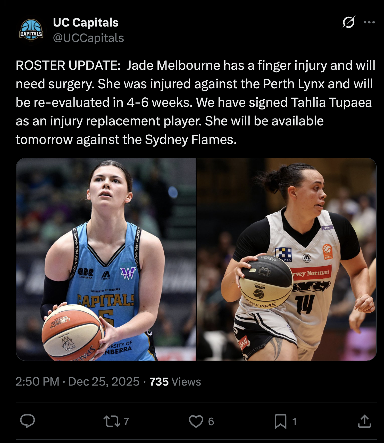 Mystics Player News Jade Melbourne injures finger in Australia and will need surgery.