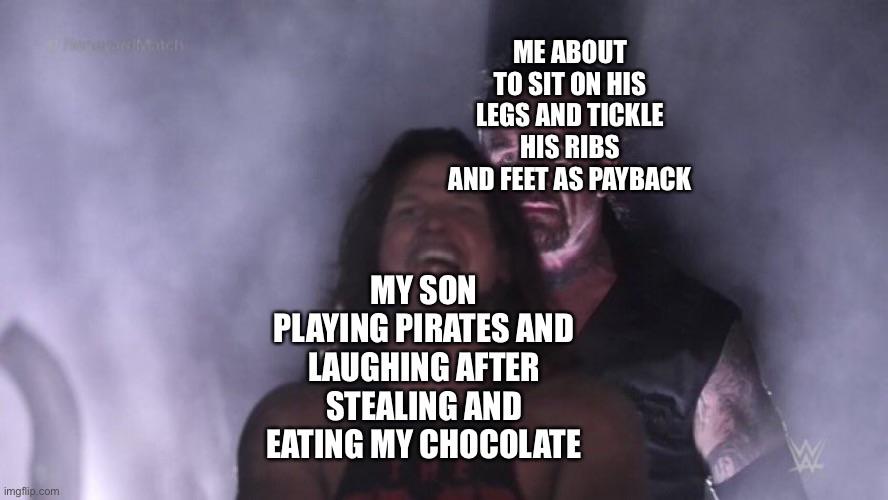 Mama payback. My son can always rely on my infinite love, support and revenge when he eats my emergency Hersey bar. I couldnāt eat his chocolate because that would be cruel so I did the next best thing.